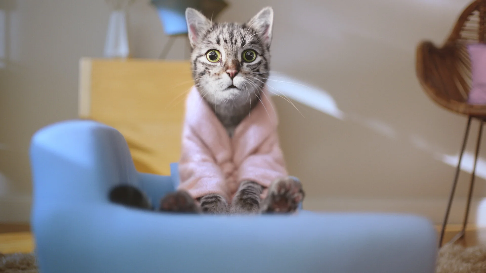You know when you've found that perfect state of higher conciousness with a pair of soothing cucumber slices on your eyes...and someone snaps you right out of it with the sound of something too tasty to resist? That's exactly what we had to put our feline heroine through for this spot ;)